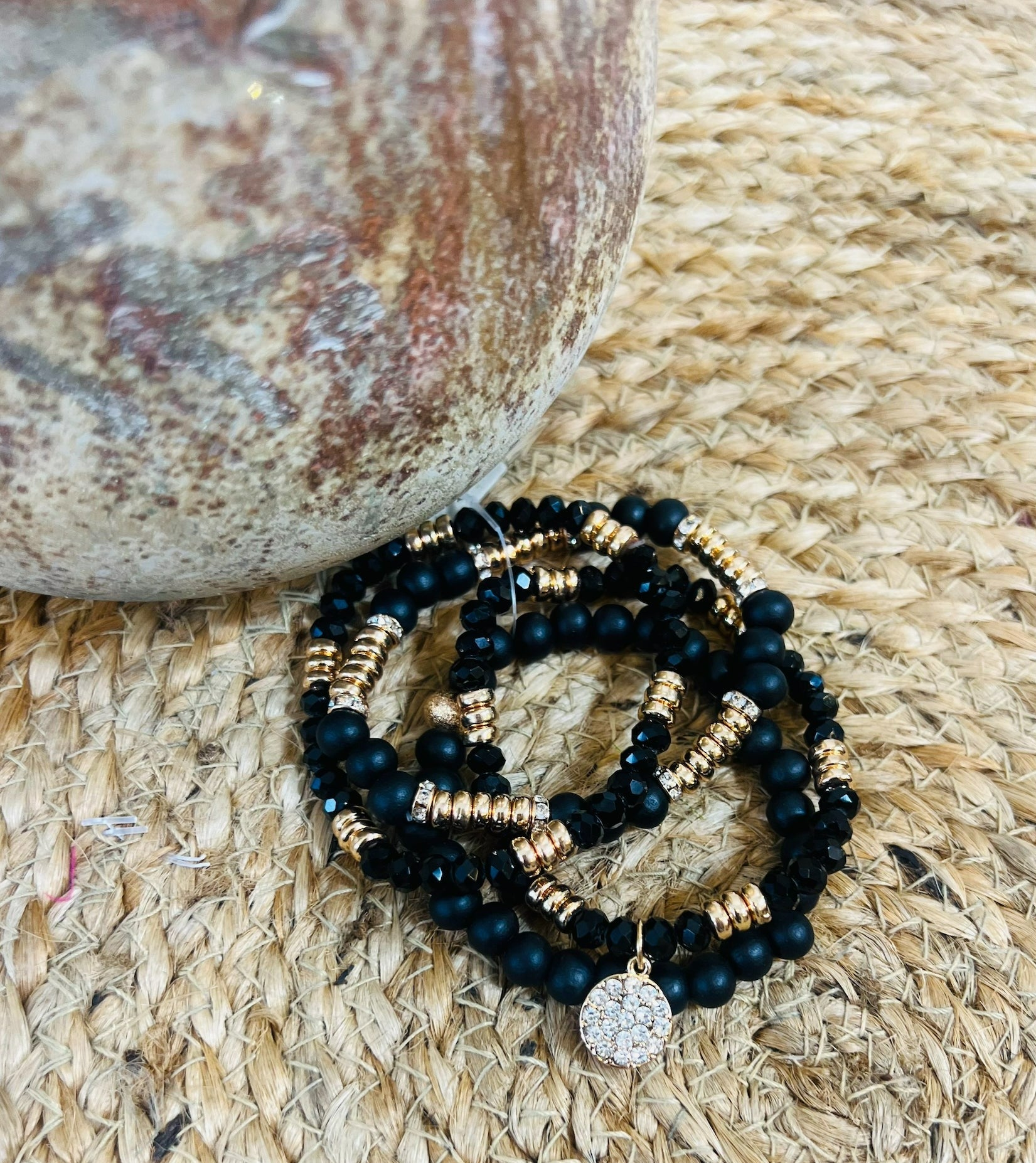 This bold bracelet adds a subtle touch of elegance to any look with its black and gold layered design and detailed charm. Perfect for everyday wear, this bracelet is sure to make a statement.