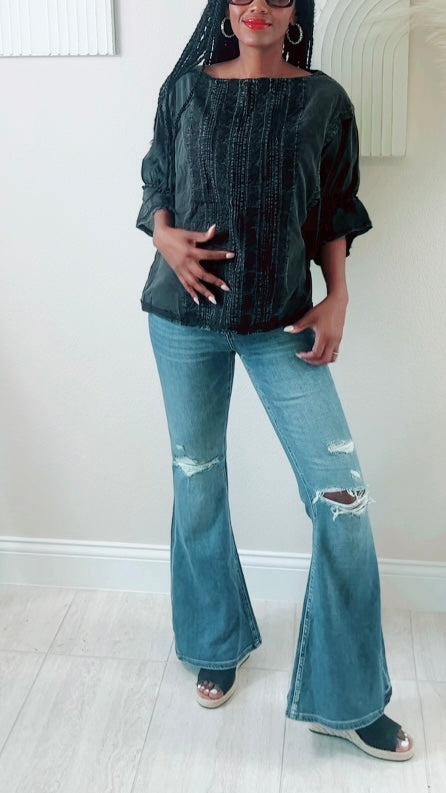 Introducing the Betty Boho Top: the perfect combination of timeless elegance and fashion-forward detailing. Featuring a flattering boat neck, elegant sleeves, and special details, this top is designed to make a statement. Master the art of effortless style and make a statement with the Betty Boho Top.